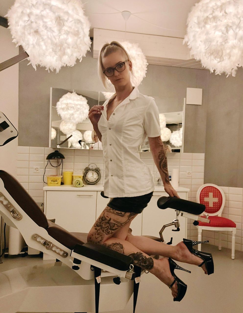 Krankenschwester Sophie Fleur betreut die Krankenstation mit hohem medizinischem Fachwissen. Nach gründlichen Untersuchungen je nach Beschwerden (rek*al,Oral oder Genital) werden die Therapien festgelegt. Behutsame oder auch konsequente Behandlungen werden bei Neupatienten und Dauerpatienten in Form von Einläufen,Strom und NS Therapien erfolgreich durchgeführt. Betreuungen durch die Nachtschwester ermöglichen auch eine Langzeittherapie.